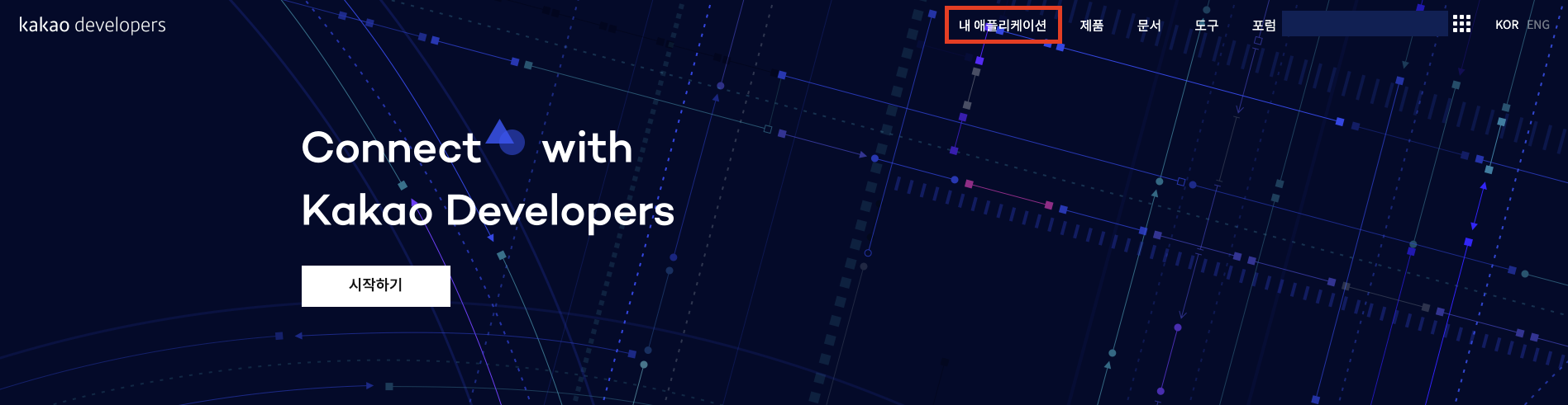 Kakao Developer 에 접속하여 로그인 한 후 상단에 있는 '내 어플리케이션' 을 클릭한다.