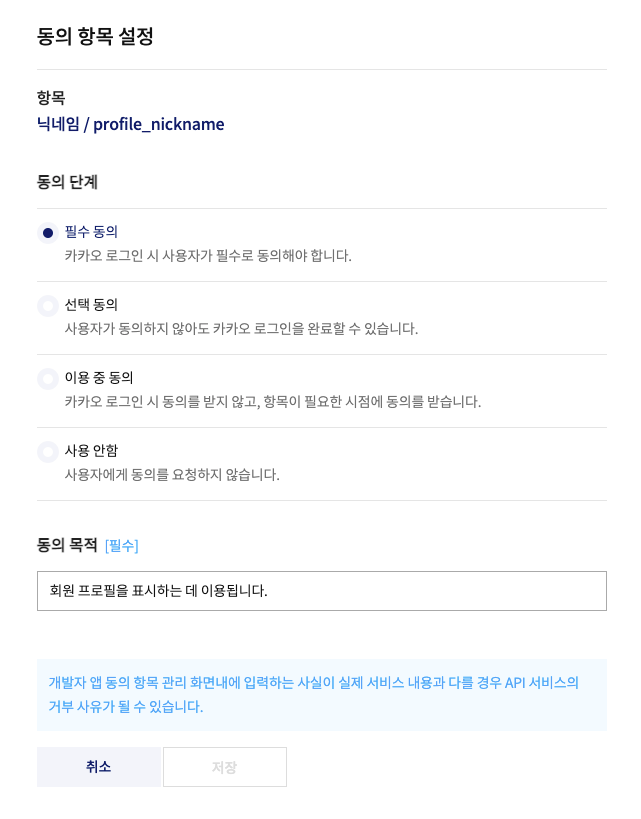 여기선 별다를 절차 없이 필수가 가능한 항목 중 닉네임, 프로필 사진을 가져오기로 했다.