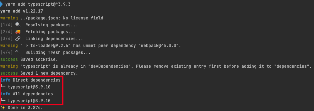 에러가 날 당시 프로젝트의 typeorm과 typescript 버전은 다음과 같았다.
