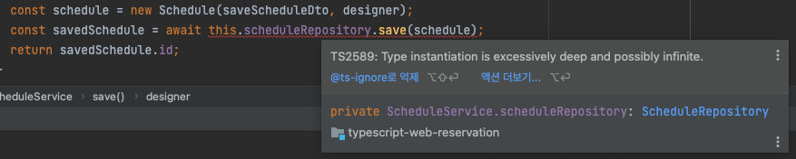 검색해보니 typeorm 깃허브에 관련 버그 이슈가 있었다. (당시 typescript 버전 3.6.x)