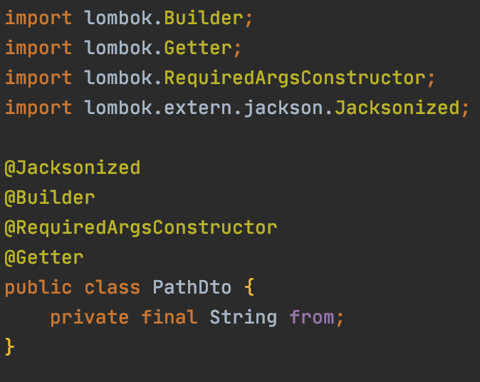 위 인용구를 해석하자면 jackson과 롬복을 조화롭게 쓰는 방법은 DTO를 불변객체로 만들고 builder를 통해 jackson이 역직렬화를 하도록 만드는 것이었다. 그 방법이 @Jacksonized 를 쓰는 거였고.